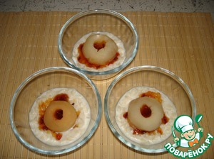 Выложить припущенные яблоки. В отверстия также положить немного джема.