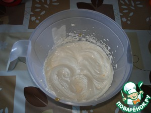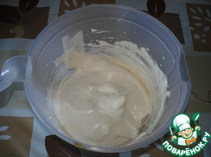 1 белок взбить с 1/3 ст. сахара и 1 ст. л. джема.