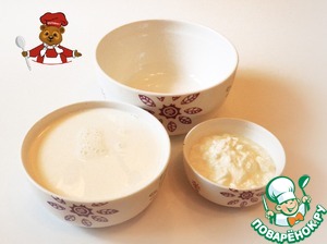 1. Смешайте в глубокой миске при помощи венчика молоко с йогуртом.