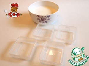 2. Перелейте полученную массу в контейнеры для приготовления йогуртов, закройте контейнеры крышками.