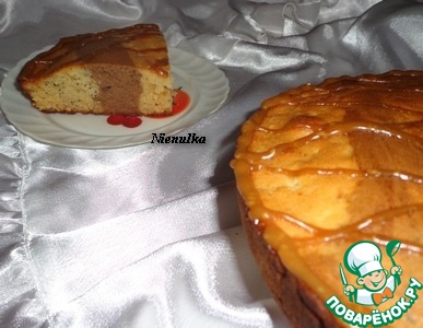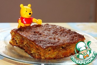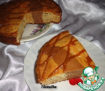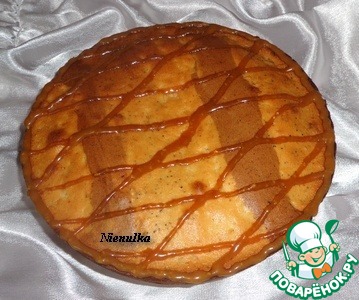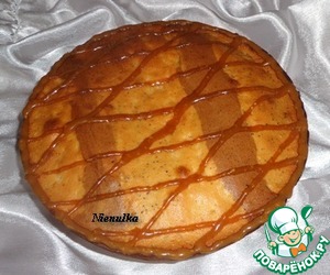 Пирог ставим в разогретую духовку и выпекаем до готовности (сухая спичка) при температуре 180-200 градусов. Сверху по желанию можно украсить карамельным соусом.