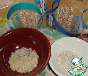 Рисовые хлопья смешиваем с 1,5 ст. л. сметаны. Также и овсяные отруби смешиваем с 1,5 ст. л. сметаны для набухания.