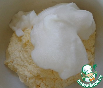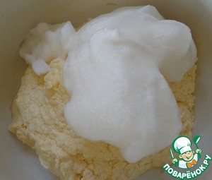 Добавляем взбитые белки к основной массе, хорошо перемешиваем.