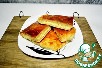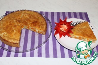 Пирогу даем немного остыть и достаем из формы. Разрезать пирог на кусочки и подаем в теплом виде к столу.