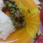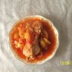 Вливаем масло, кладем голень добавляем специи ( у меня сухая аджика ) и перемешиваем. Закрываем крышкой и тушим примерно 30 мин. (до мягкости курицы). Выключаем и даем настояться примерно 20 мин.