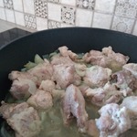 Готовила в МВ-скороварке, поэтому воду не добавляла, сока от мяса и лука и так получилось много, жидкость там, при готовке, не испаряется.