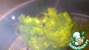 Брокколи я приготовила на пару в течении 5-10мин. До полу готовности. Можно в кипяток на 2-3 минуты - приварить.