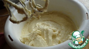 Убавить скорость на минимальную, постепенно добавить муку и разрыхлитель, размешать до однородности;