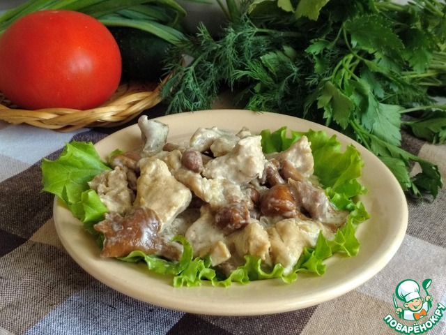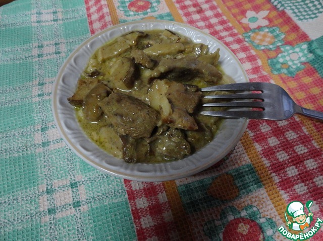 Рецепт «Тушеная свинина с маринованными грибами»: