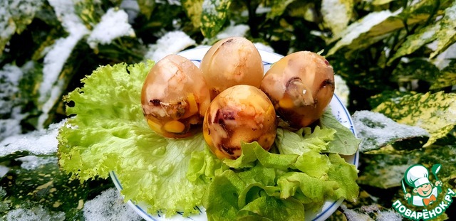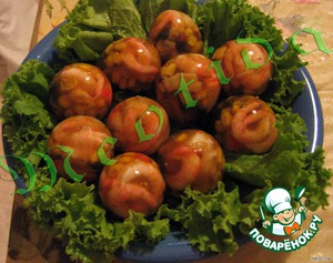 на самом деле оказалось, что делать очень просто (главное скорлупки собрать)..а вот с такой специальной приправой для рыбного заливного они получились очень вкусными (с желатином обычным мне не очень понравилось, когда я попробовала..потому что вкуса никакого от желатина нет) и на столе эти яйца форму не теряли часа два где-то (это с учетом того, что в комнате довольно жарко было)
