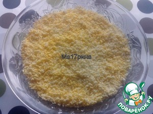 Сверху белков на мелкой терке натереть желтки. Салат готов!