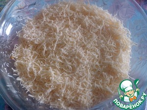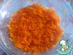 Сыр натереть на мелкой терке и выложить на морковный слой. Промазать майонезом.