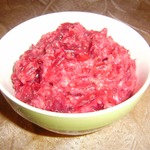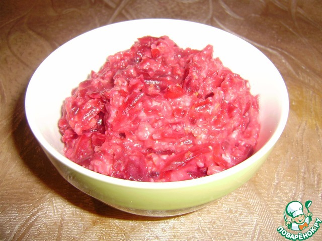 • Большую часть (по времени) в приготовлении этой кашки занимает, как ни странно, подготовка свеклы. Замечательно, если у вас осталась отварная свекла со вчерашнего вечернего салатика - остается ее нарезать мелким кубиком, либо натереть на крупной терке. Если же такой свеколки не оказалось, можно спассеровать сырую в небольшом количестве растительного масла.
