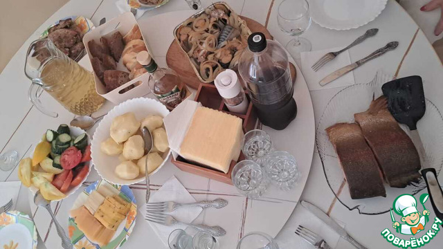 Коптили рыбку на природе - в сосновом лесу, около чудесного озера. На озере прорубили две майны - ныряли под лед и на глубину погружались на 14 метров)) Для согрева катались на коньках. И вот после такого чудного моциона дошла очередь до копченой рыбки. А закоптилась она золотистая, сочная и очень ароматная на ольховых щепочках. Раньше не догадывалась рыбку порезать и сделать сразу порционной - ломали/резали готовую. А тут так прекрасно - каждому по кусочку. Да и скумбрия попалась свежайшая