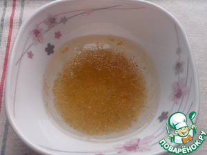 Желатин замочить в 100 мл воды, оставить на то время, которое указано на упаковке. Затем растопить в микроволновке.