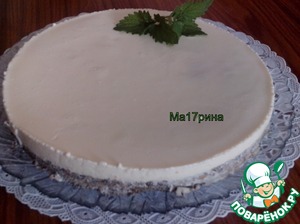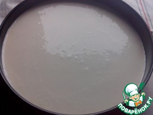 Добавить желатин, перемешать. Дать крему "схватиться". Если крем сразу вылить на пирог, то он будет вытекать из разъемной формы. Если форма неразъемная, то крем можно вылить сразу.