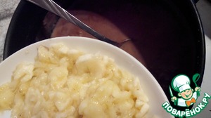 Разминаем вилкой банан в пюре и добавляем в кашу. Перемешиваем. -