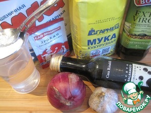 Ингредиенты для «Кукурузный хлеб с запечёнными чесноком и красным луком»: