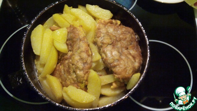 Рецепт «Отбивная из куриного окорочка с картофелем»: