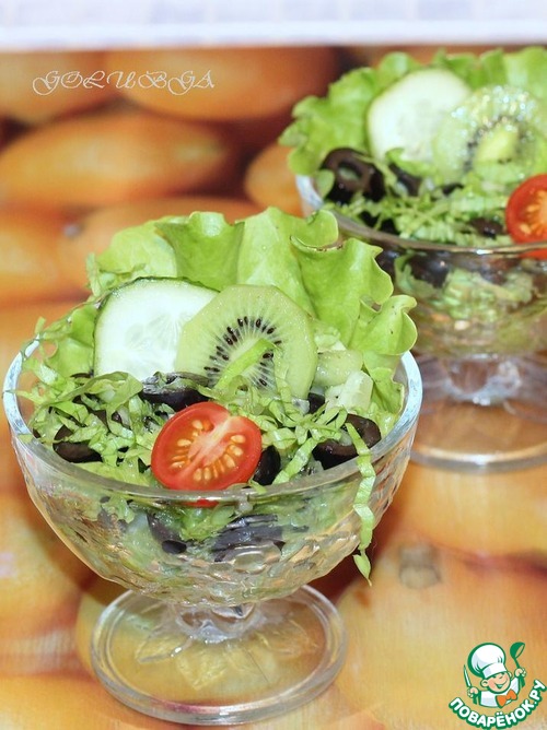 Рецепт «Cалат с огурцами, маслинами и киви»: