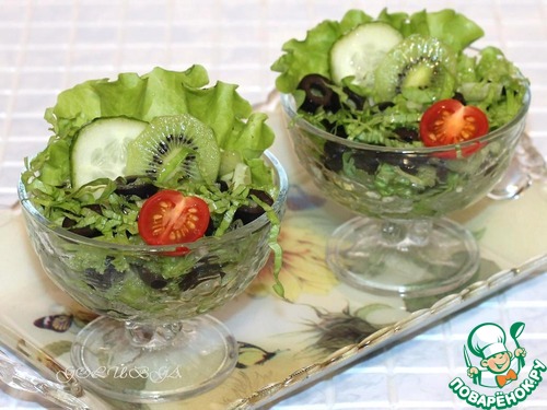 Cалат с огурцами, маслинами и киви