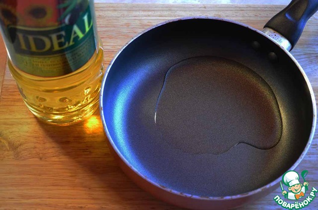 Берём сковороду, наливаем масло "Идеал" (микс подсолнечного и оливкового масел).