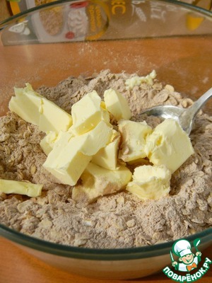 Масло нарезать кусочками, добавить к сухим ингредиентам.