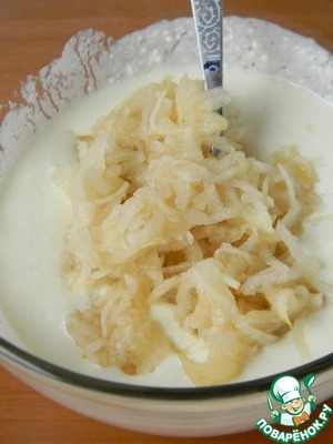 Груши почистить, натереть на крупной терке, добавить к творогу. Перемешать.