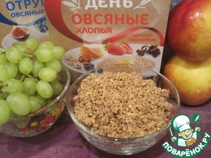 Раннее утро...6.00.. Воскресенье... Осень.. Семья спит... Интересно, почему мне не спится? Ну что ж, приготовлю-ка я фруктово-овсяный пирог на завтрак, да такой, что б муж и дочка, ощущая сквозь сон ароматы, сказали "ВАУ!!!" Всё, что нужно для пирога на кухне есть-овсяные хлопья Мистраль, фрукты и даже миндальная мука, заготовленная предусмотрительно впрок... Пирог сделала по мотивам пирога "Фруктовый Микс" от хозяйки кулинарного блога Нины Тарасовой (Niksya)