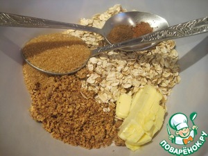 Приготовим ароматную посыпку-смешаем ингредиенты и руками перетрём до состояния крошки.