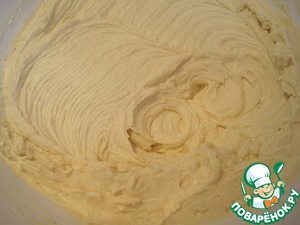 Продолжая взбивать, добавим по одному яйца, затем творожный сыр. Получится гладкая, воздушная масса.