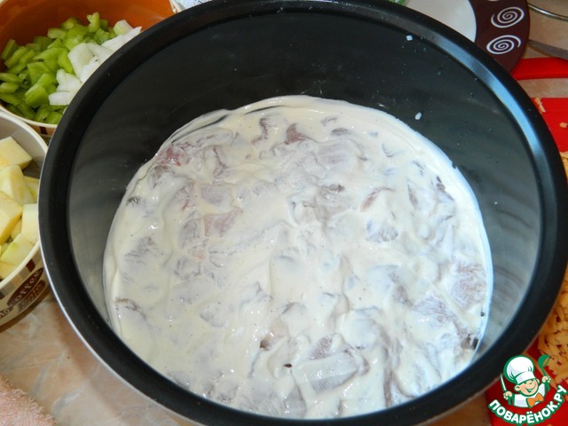 • Дно чаши мультиварки смазываем маслом и немного масла оставляем на дне.