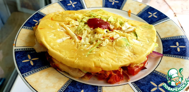 5. Выложить на тарелку капустой вверх, намазать кетчупом, майонезом.