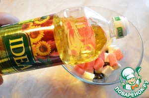 Добавить 1 столовую ложку подсолнечного масла "IDEAL" микс подсолнечного и оливкового масел, перемешать. Полученную массу выложить на запеченную брускетту и подавать к столу! Очень вкусно!!!