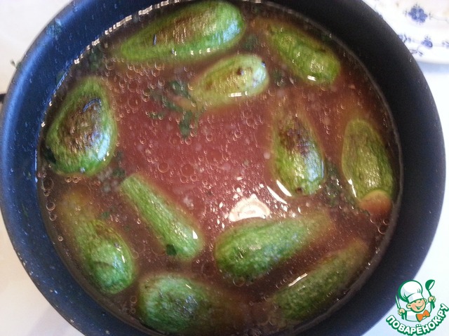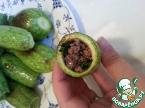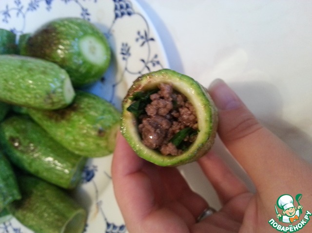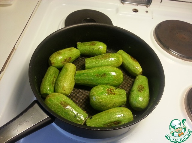 Цуккини наполняем фаршем и укладываем в сковороду.