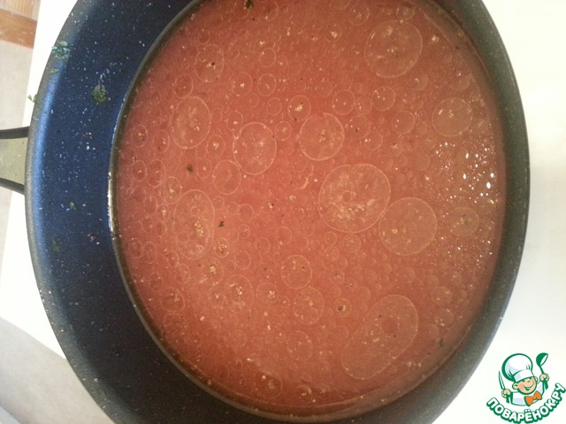 Далее в глубокую сковороду или кастрюлю вливаем воду и томатную пасту.