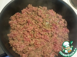 Разогреваем масло и обжариваем фарш, чтобы не было больших кусочкоа.