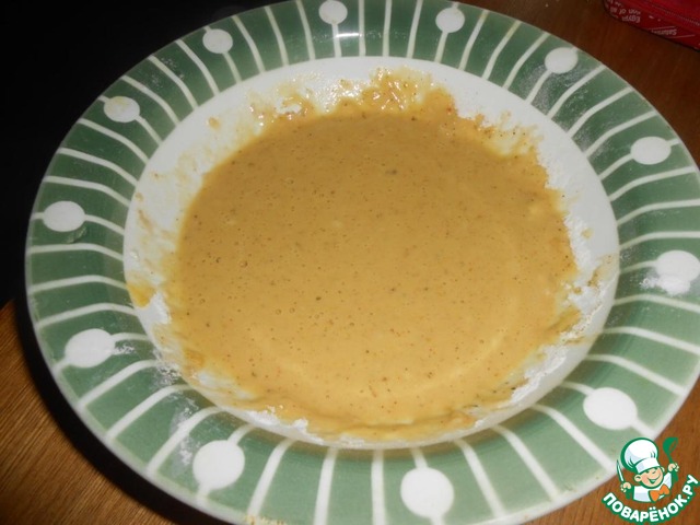 Готовим кляр. Берем муку, яйца, соевый соус, сок лимона, перец и 60 мл минеральной воды, перемешиваем.