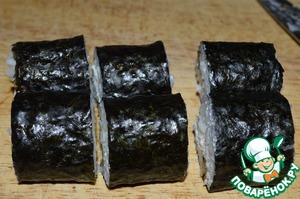 Популярность японской кухни в России набирает обороты. Появляется все больше сетевых магазинов, которые предлагают широкий асортимент роллов и суши с различными сочетаниями продуктов. Сочетание баклажана с японским рисом и нори показалось мне очень необычным и интересным. По сути это сочетание привычного нам баклажанового рулетика с японским роллом, но, как оказалось, очень даже удачное.