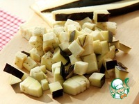 Баклажан нарезать небольшими кубиками, посолить и дать полежать минут 20. |