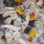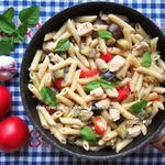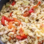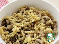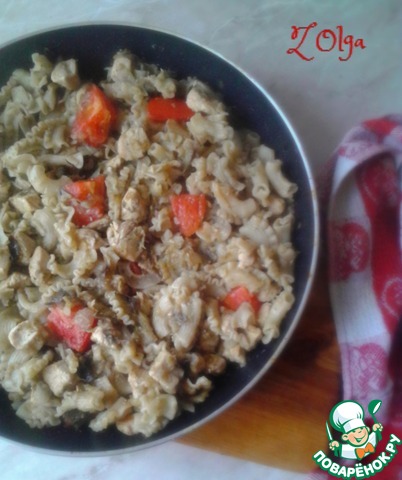 Описание: В нашей семье в большом почете макаронные изделия. Есть множество рецептов, как их облагородить, но этот вариант один из любимых. До сих пор делала я его на "глазок", но конкурс обязывает...