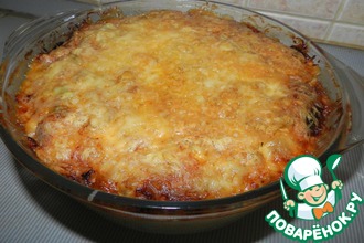 5. Сверху натереть сыр. Запекать в предварительно разогретой до 200 градусов духовке около 15 минут до появления румяной корочки.