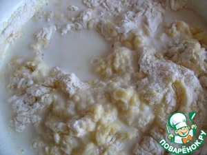 6)Добавляем молоко комнатной температуры и еще немного взбиваем.