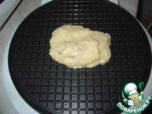 10)Разогреваем вафельницу. На горячую вафельницу выливаем наше тесто. Накрываем вафельницу крышкой и готовим вафли до готовности (3-5 минут).
