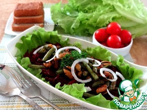 Рецепт «Салат из свеклы с зеленой фасолью и мидиями»: