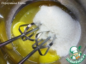 Разбиваем яйца в кастрюле, кладем сахар и соль.