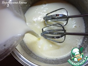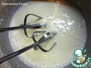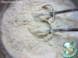 Муку просеиваем, вмешиваем в нее разрыхлитель и добавляем в тесто.