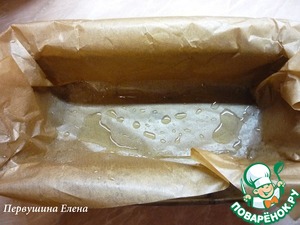 Застилаем форму бумагой для выпечки. Смазываем ее растительным маслом и