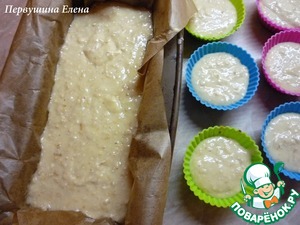выкладываем тесто. Форма должна быть приличных размеров, т. к. теста выходит почти 1,5 кг. У меня форма маловата, поэтому я решила испечь еще и маленькие кексики.