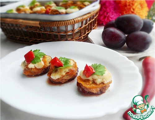 Рецепт «Алыча, фаршированная курицей, под томатной крышечкой»: